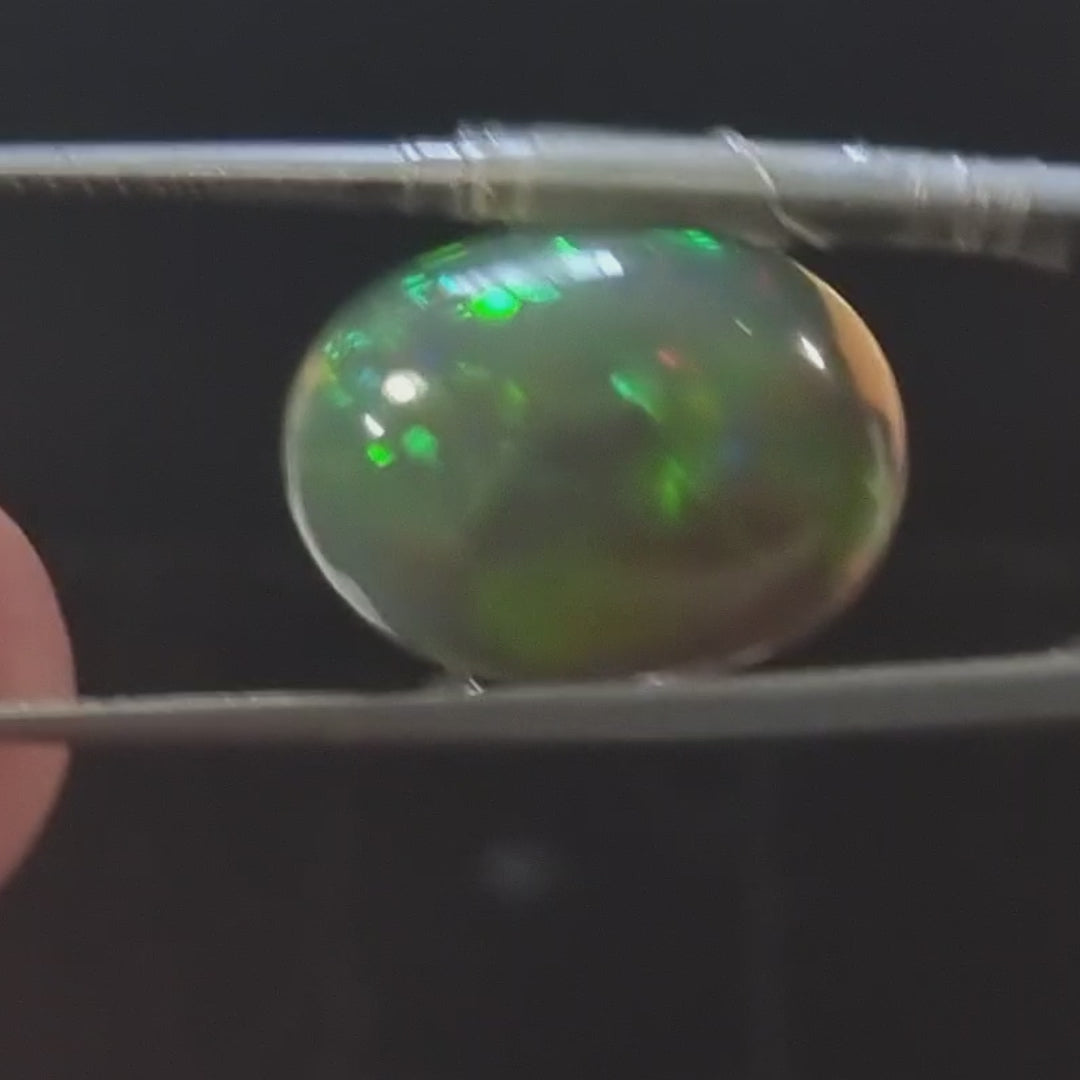 Black Opal special Ethiopian Welo, 10 ct oval polished, natural, intense Play-of-Colour