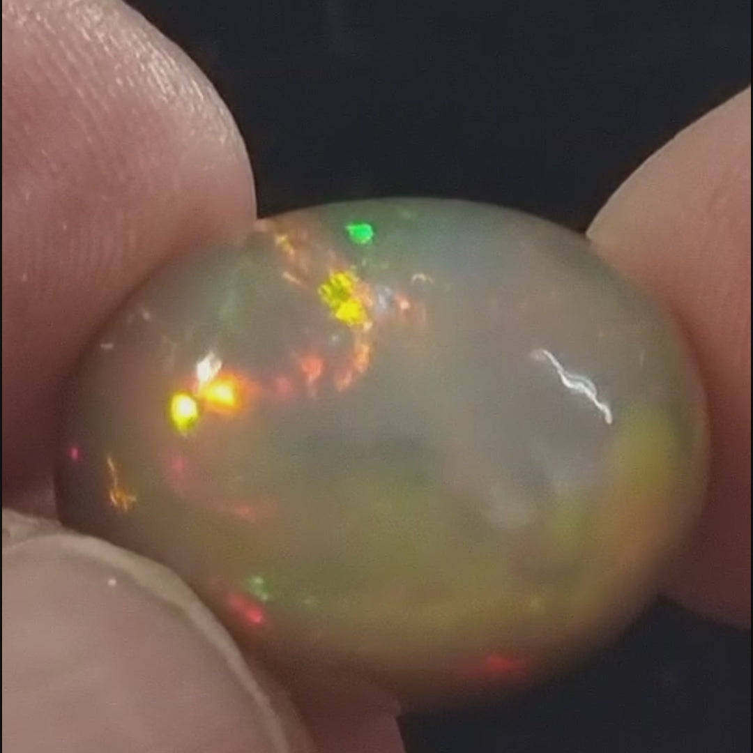 Black Opal special Ethiopian Welo, 21.2 ct oval polished, natural, intense Play-of-Colour