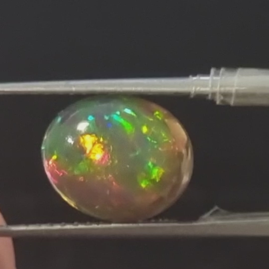 Black Opal special Ethiopian Welo, 3.6 ct oval polished, natural, intense Play-of-Colour