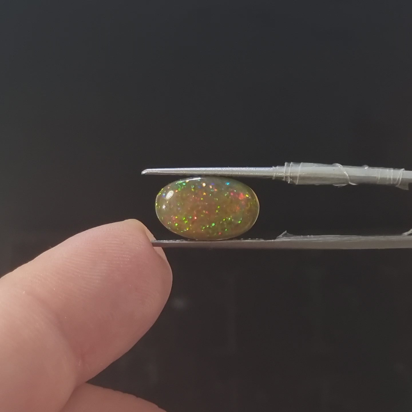 Black Opal special Ethiopian Welo, 4.1 ct oval polished, natural, intense Play-of-Colour
