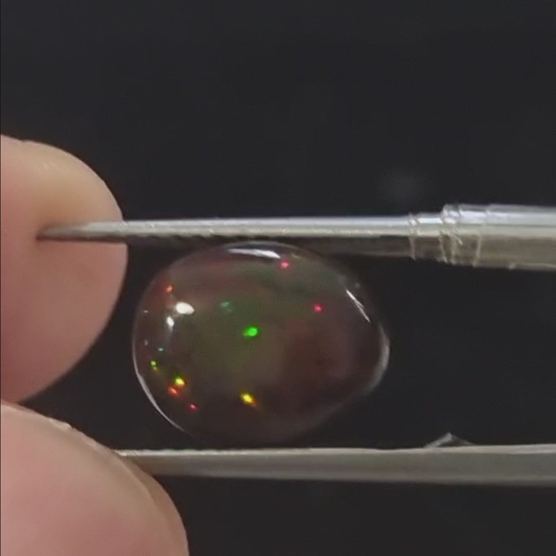 Black Opal special Ethiopian Welo, 4.6 ct oval polished, natural, intense Play-of-Colour