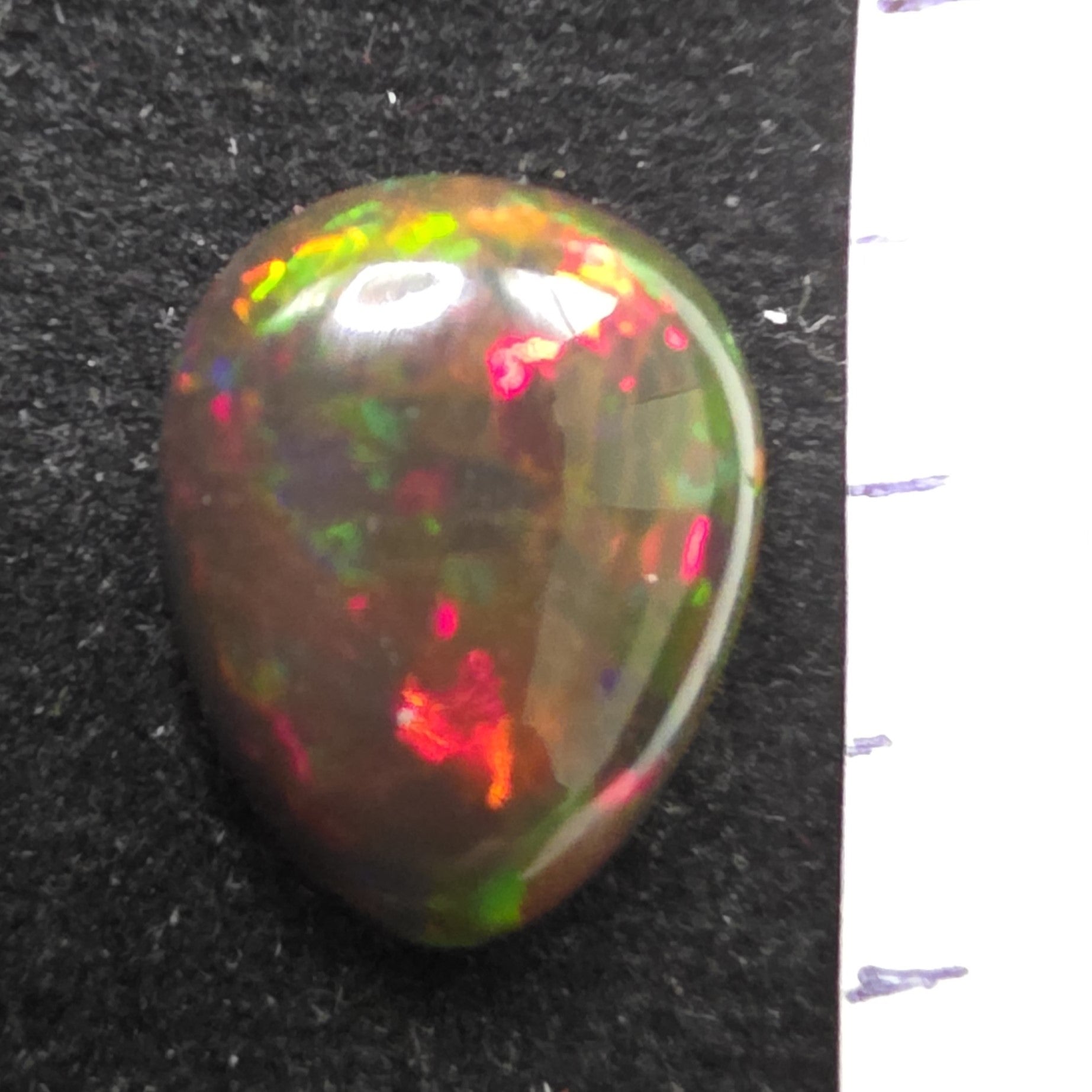Black Opal special Ethiopian Welo, 4.7 ct pear polished, natural, intense Play-of-Colour