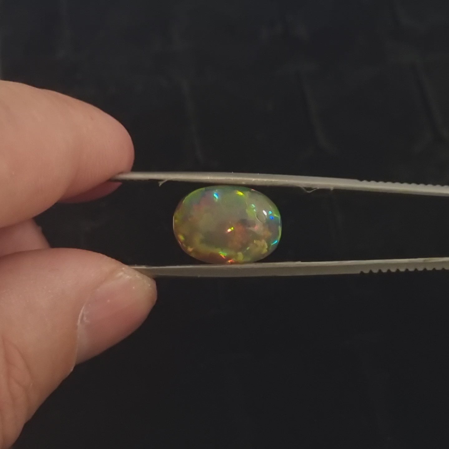 Black Opal special Ethiopian Welo, 5.4 ct oval polished, natural, intense Play-of-Colour