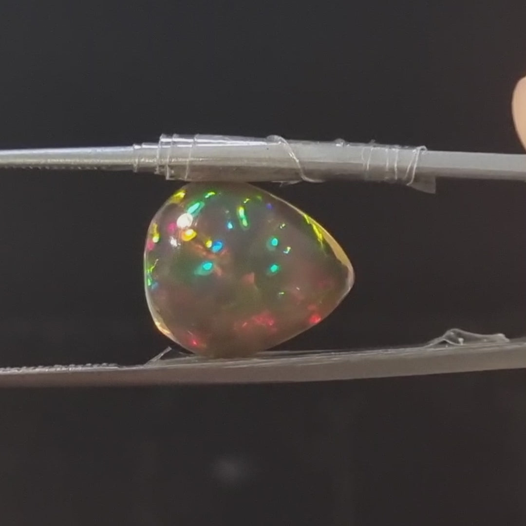 Black Opal special Ethiopian Welo, 5.6 ct pear polished, natural, intense Play-of-Colour