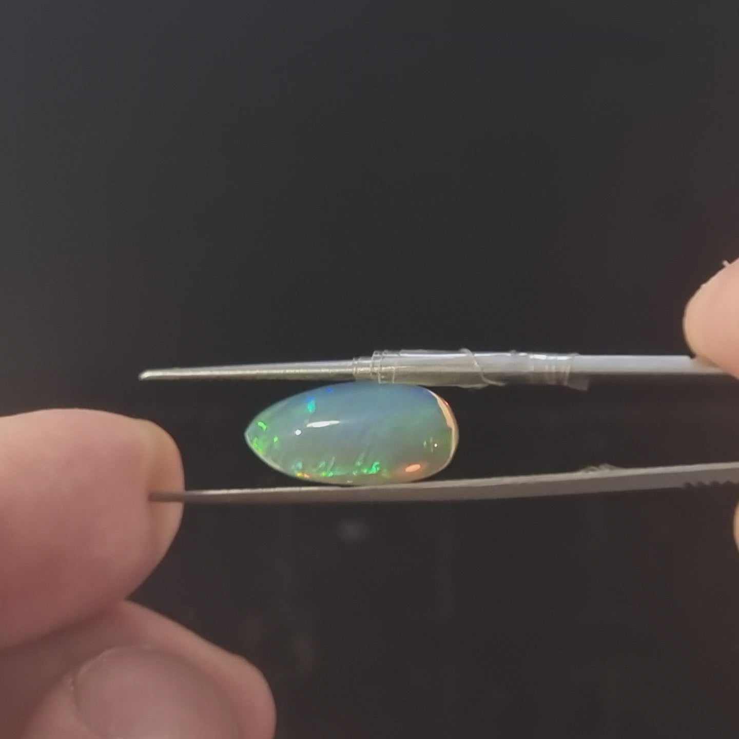 Black Opal special Ethiopian Welo, 5 ct pear polished, natural, intense Play-of-Colour
