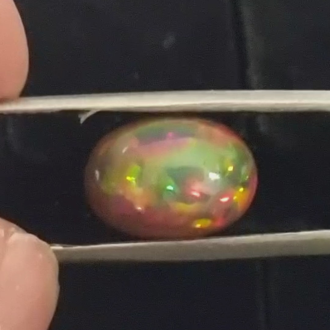 Black Opal special Ethiopian Welo, 6.05 ct oval polished, natural, intense Play-of-Colour