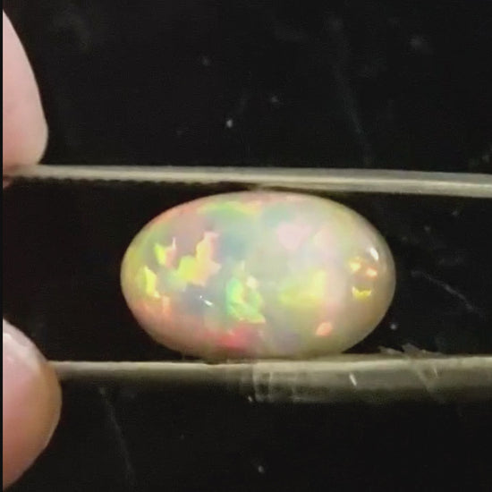 Black Opal special Ethiopian Welo, 6.55 ct oval polished, natural, intense Play-of-Colour