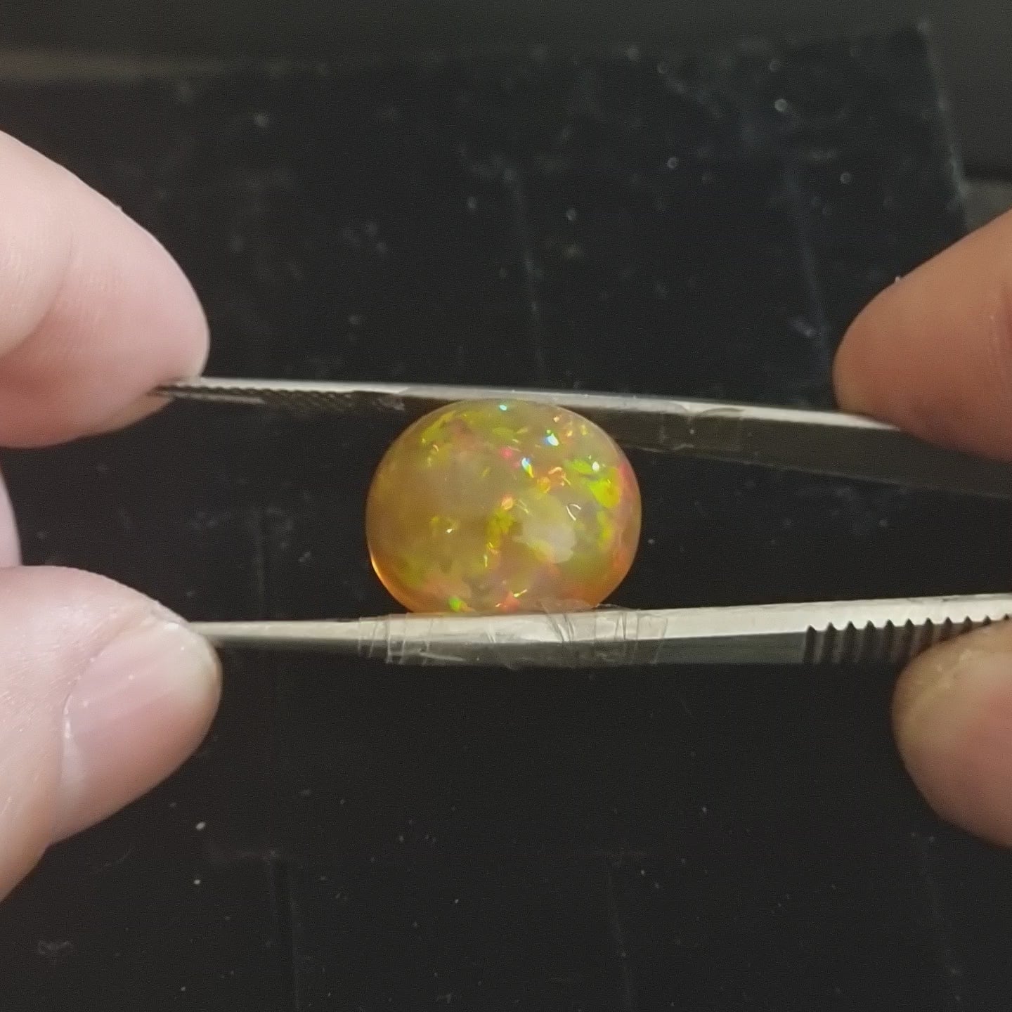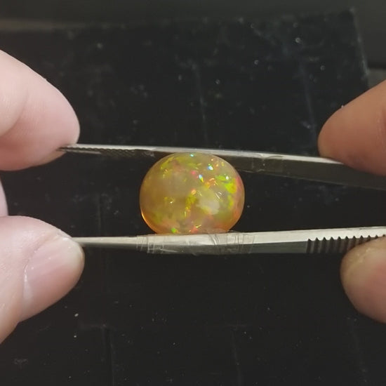 Honey Opal special Ethiopian Welo, 12.55 ct oval polished, natural, intense Play-of-Colour