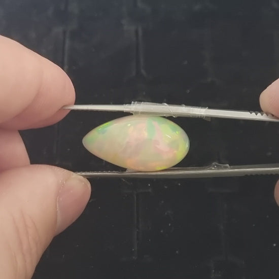 White Opal special Ethiopian Welo, 10.75 ct pear polished, natural, intense Play-of-Colour