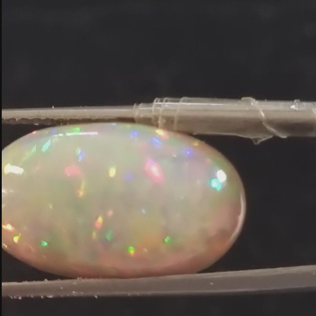White Opal special Ethiopian Welo, 11.55 ct oval polished, natural, intense Play-of-Colour