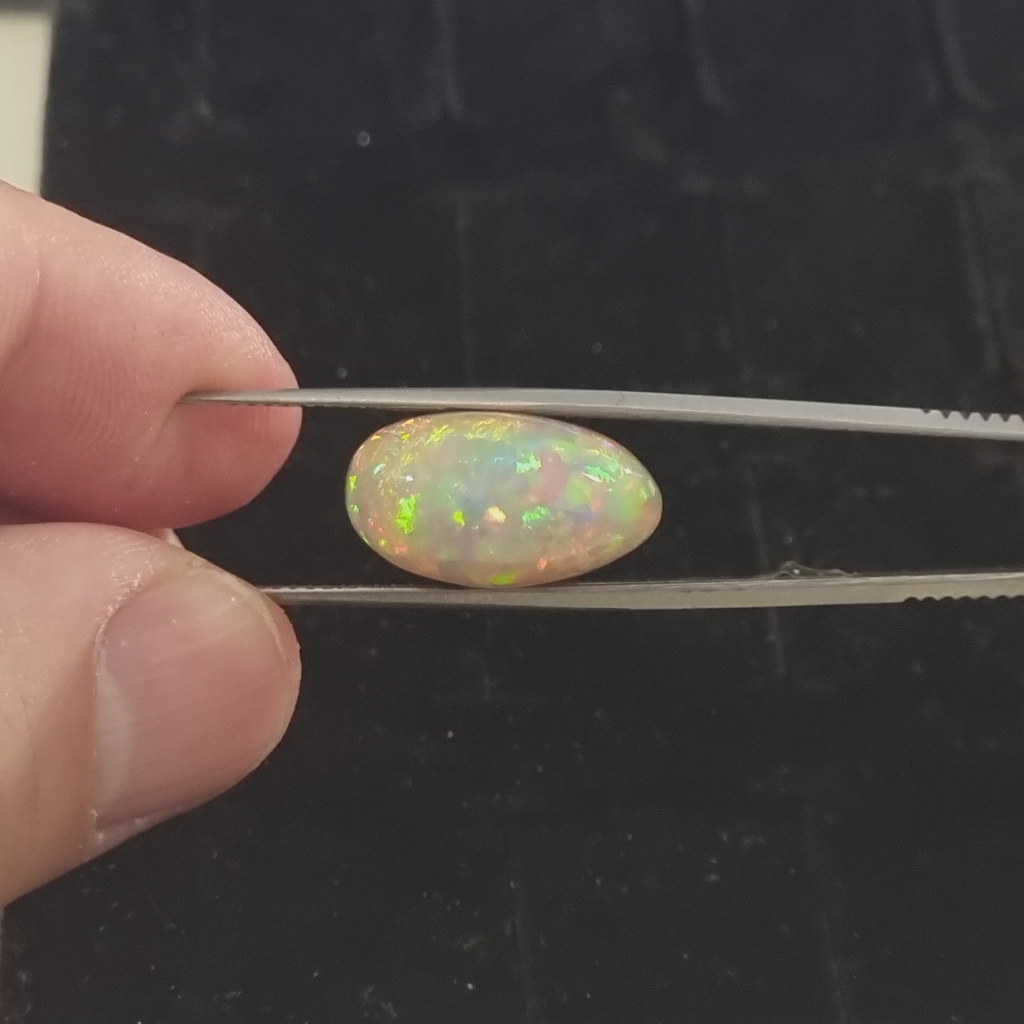 White Opal special Ethiopian Welo, 12.25 ct freeform polished, natural, intense Play-of-Colour
