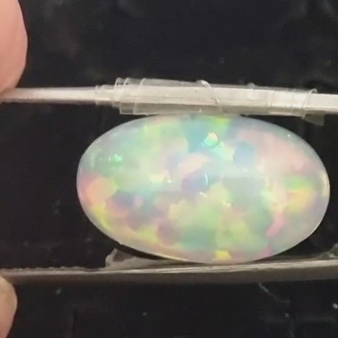 White Opal special Ethiopian Welo, 13.05 ct oval polished, natural, intense Play-of-Colour