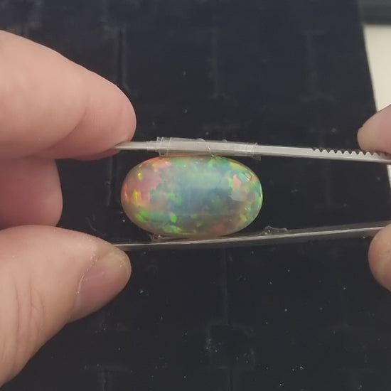 White Opal special Ethiopian Welo, 13.8 ct oval polished, natural, intense Play-of-Colour