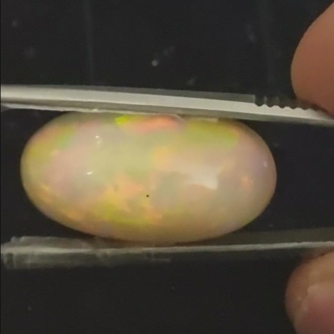 White Opal special Ethiopian Welo, 20.6 ct oval polished, natural, intense Play-of-Colour