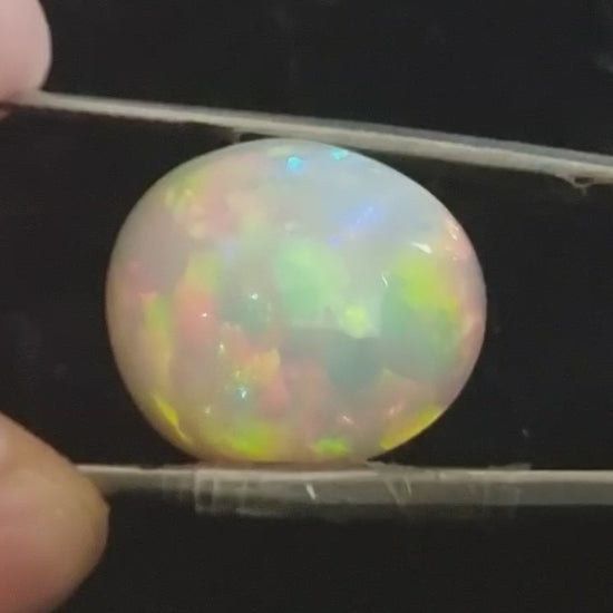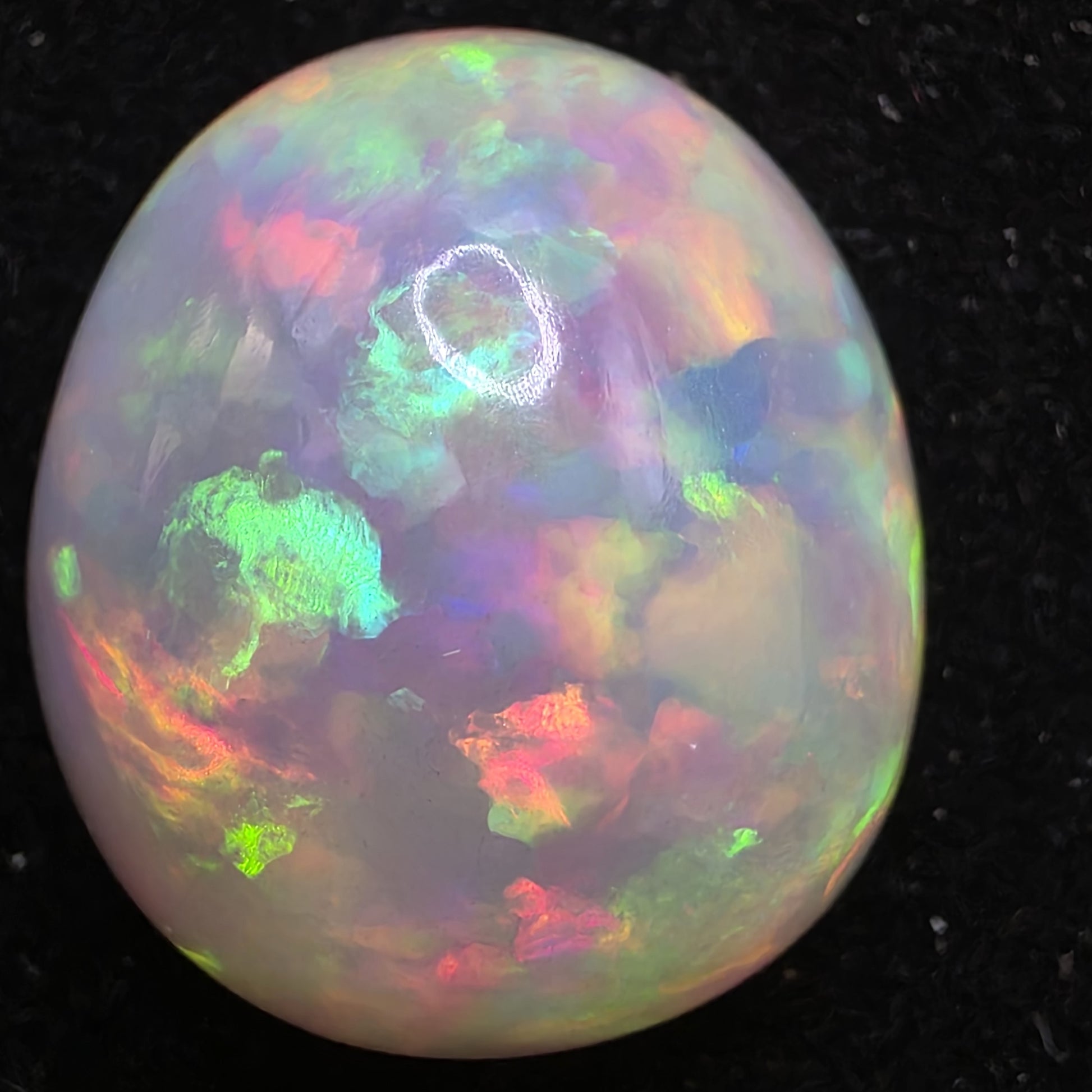 White Opal special Ethiopian Welo, 24 ct freeform polished, natural, intense Play-of-Colour