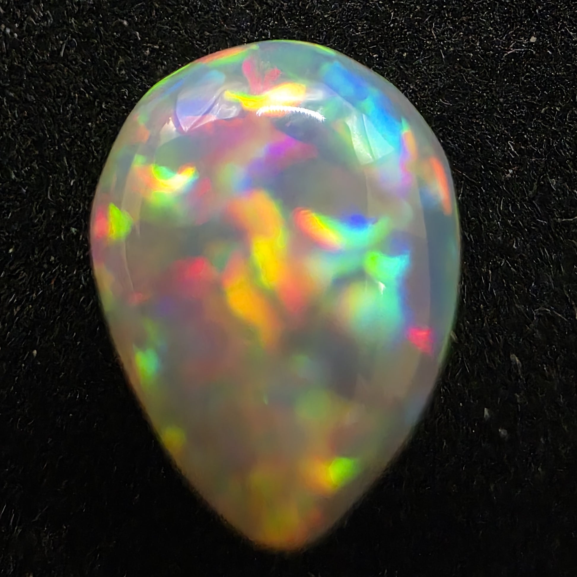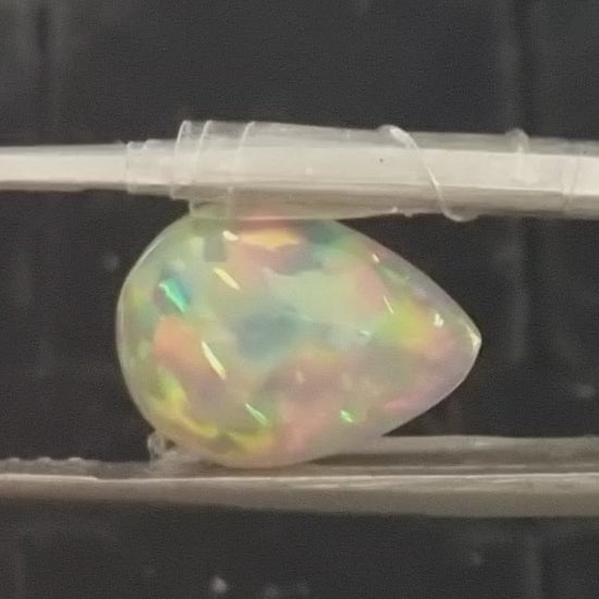 White Opal special Ethiopian Welo, 3 ct pear polished, natural, intense Play-of-Colour