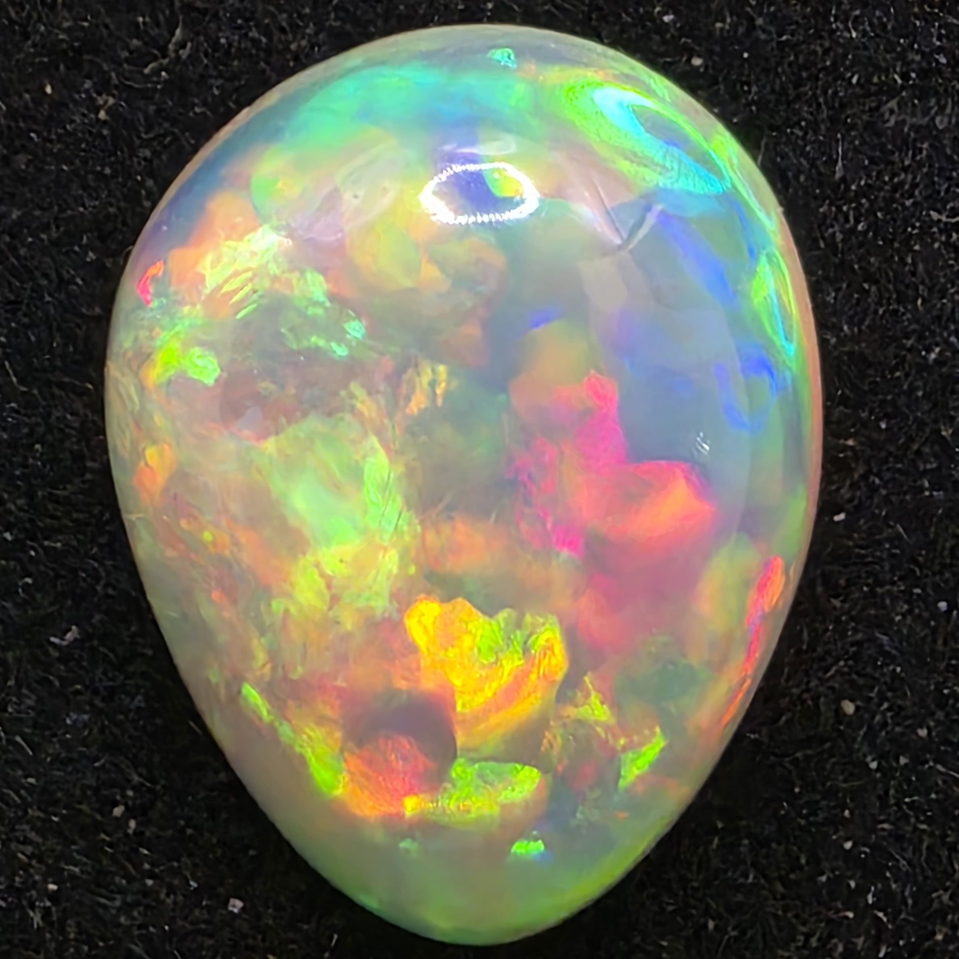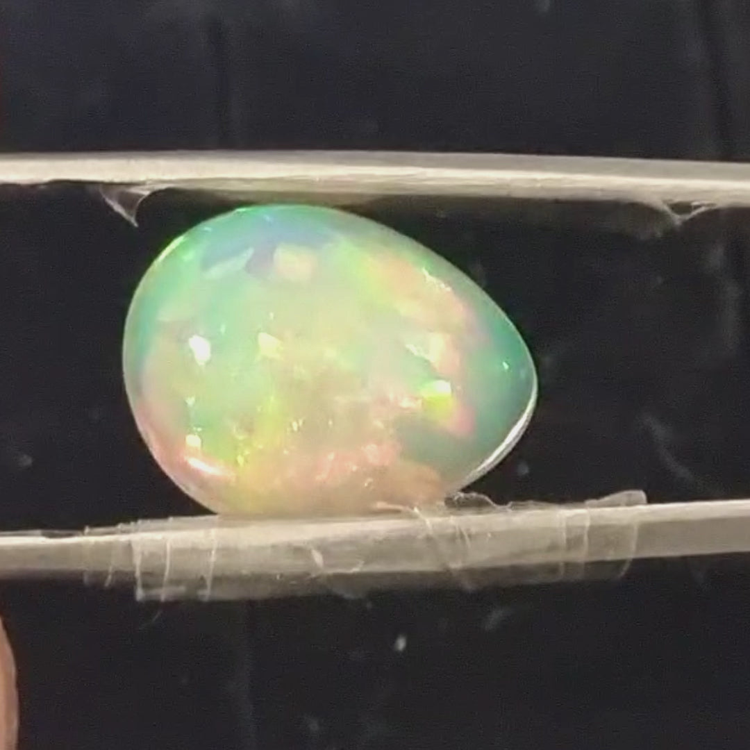 White Opal special Ethiopian Welo, 5.3 ct pear polished, natural, intense Play-of-Colour