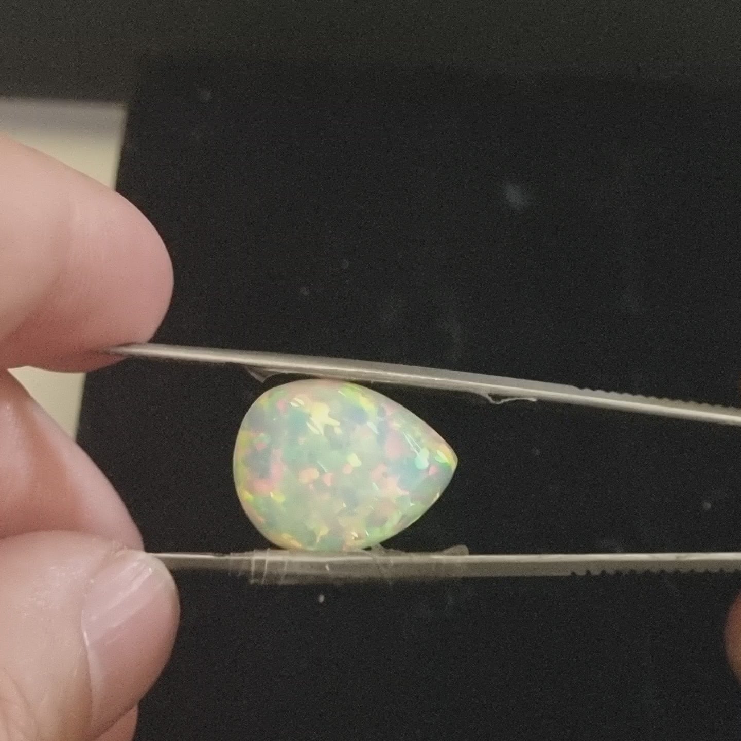 White Opal special Ethiopian Welo, 5.5 ct pear polished, natural, intense Play-of-Colour