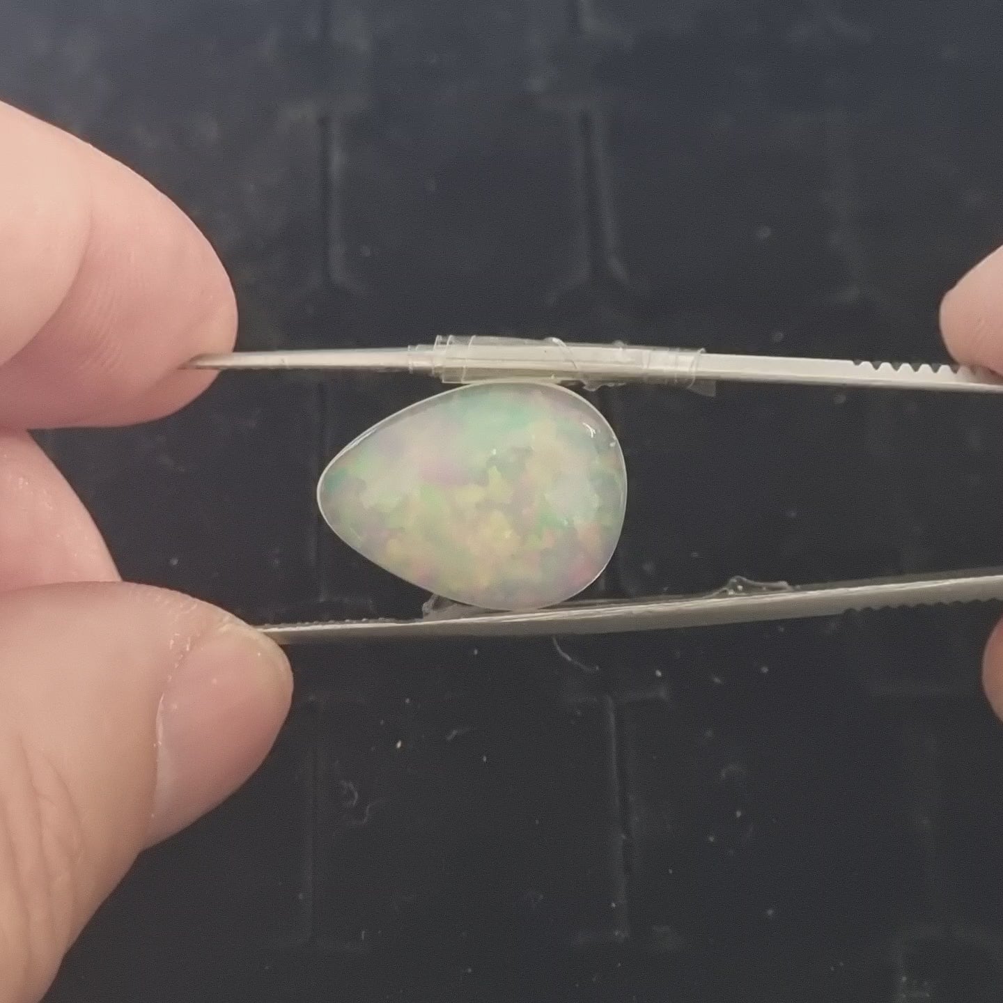 White Opal special Ethiopian Welo, 6.2 ct pear polished, natural, intense Play-of-Colour