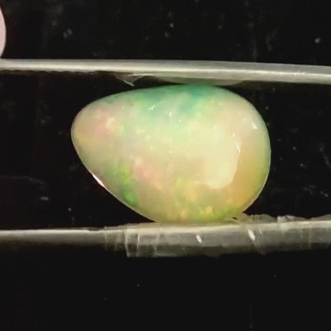 White Opal special Ethiopian Welo, 6.7 ct freeform polished, natural, intense Play-of-Colour