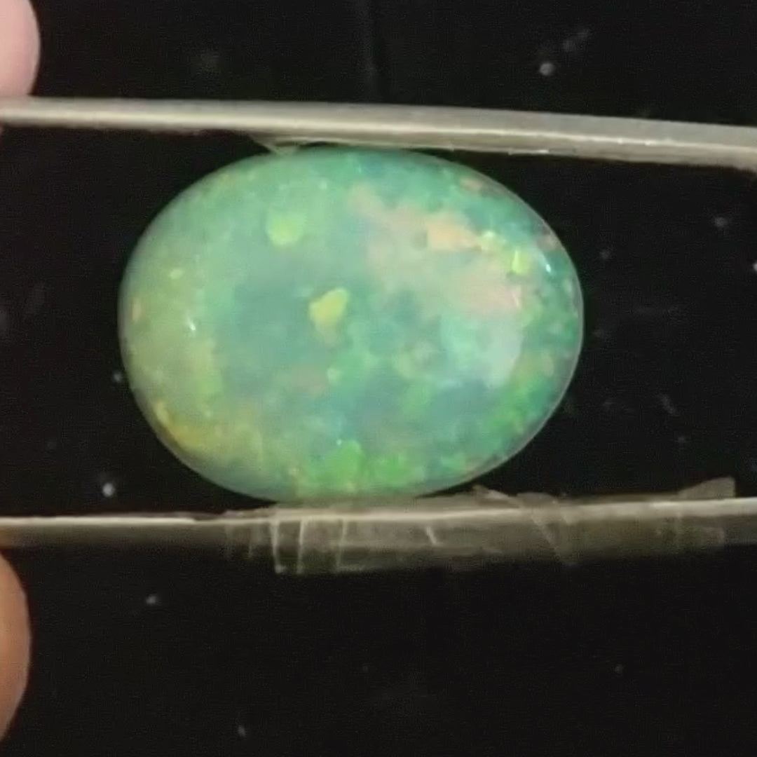 White Opal special Ethiopian Welo, 6.7 ct oval polished, natural, intense Play-of-Colour