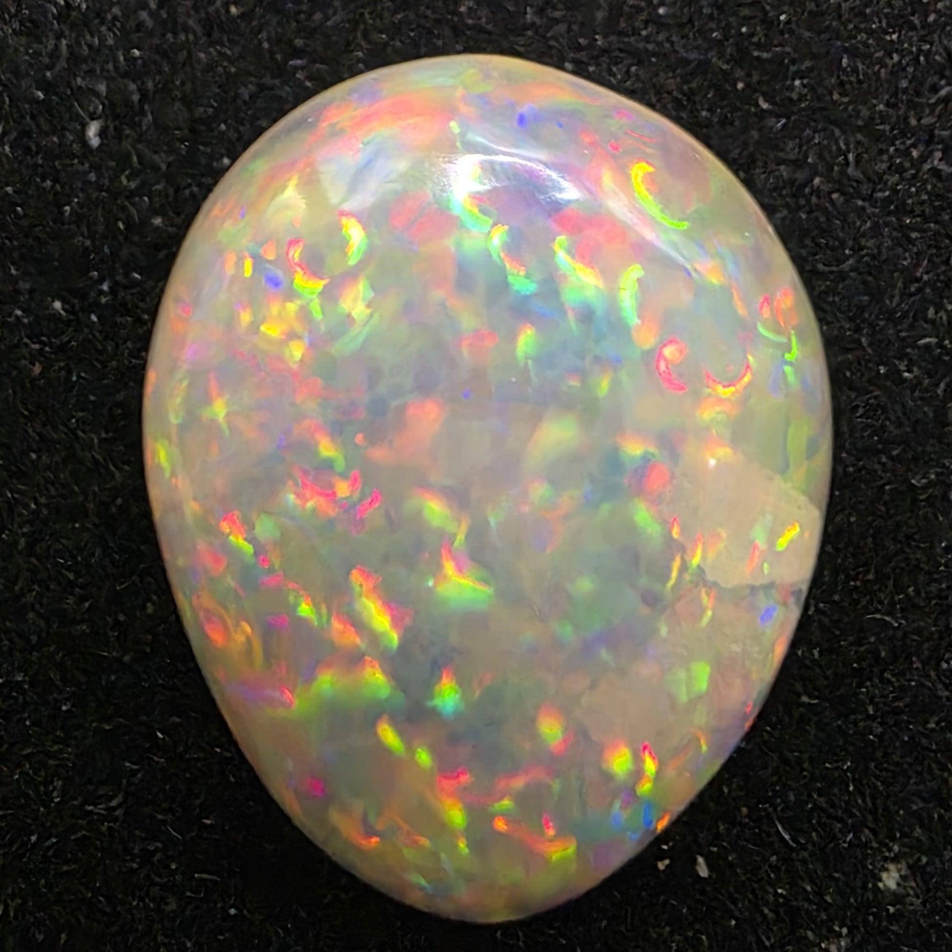 White Opal special Ethiopian Welo, 6.85 ct oval polished, natural, intense Play-of-Colour