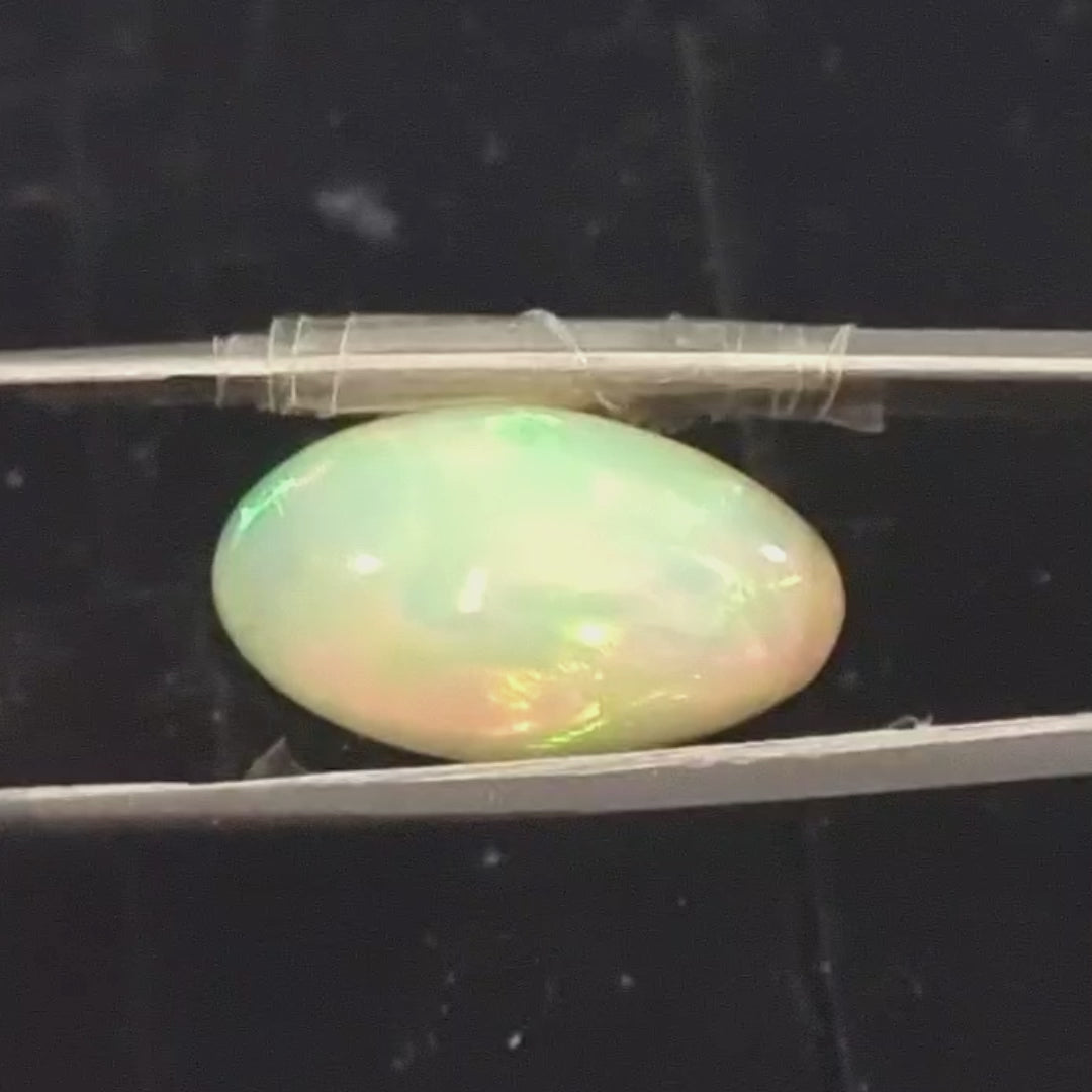 White Opal special Ethiopian Welo, 6.9 ct oval polished, natural, intense Play-of-Colour