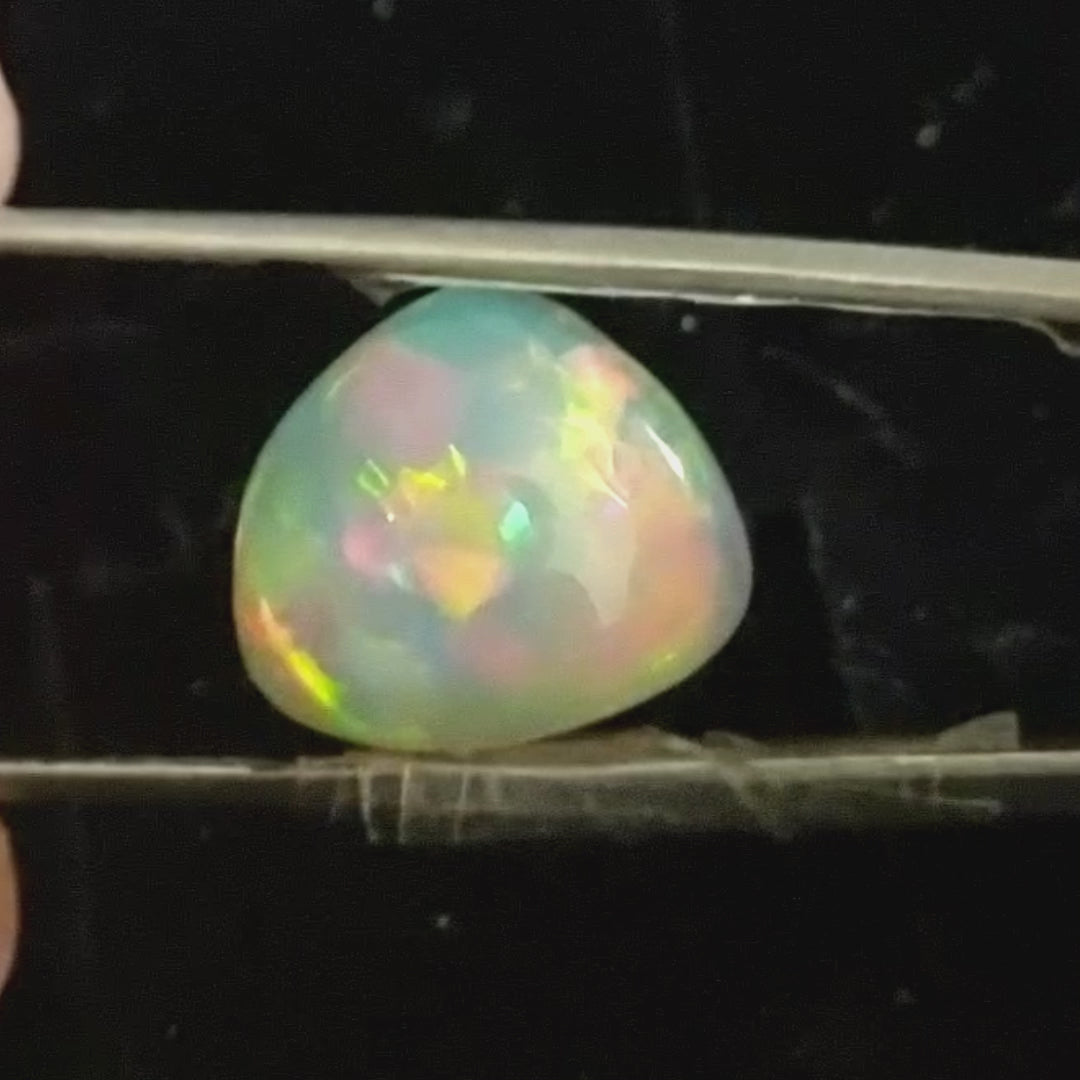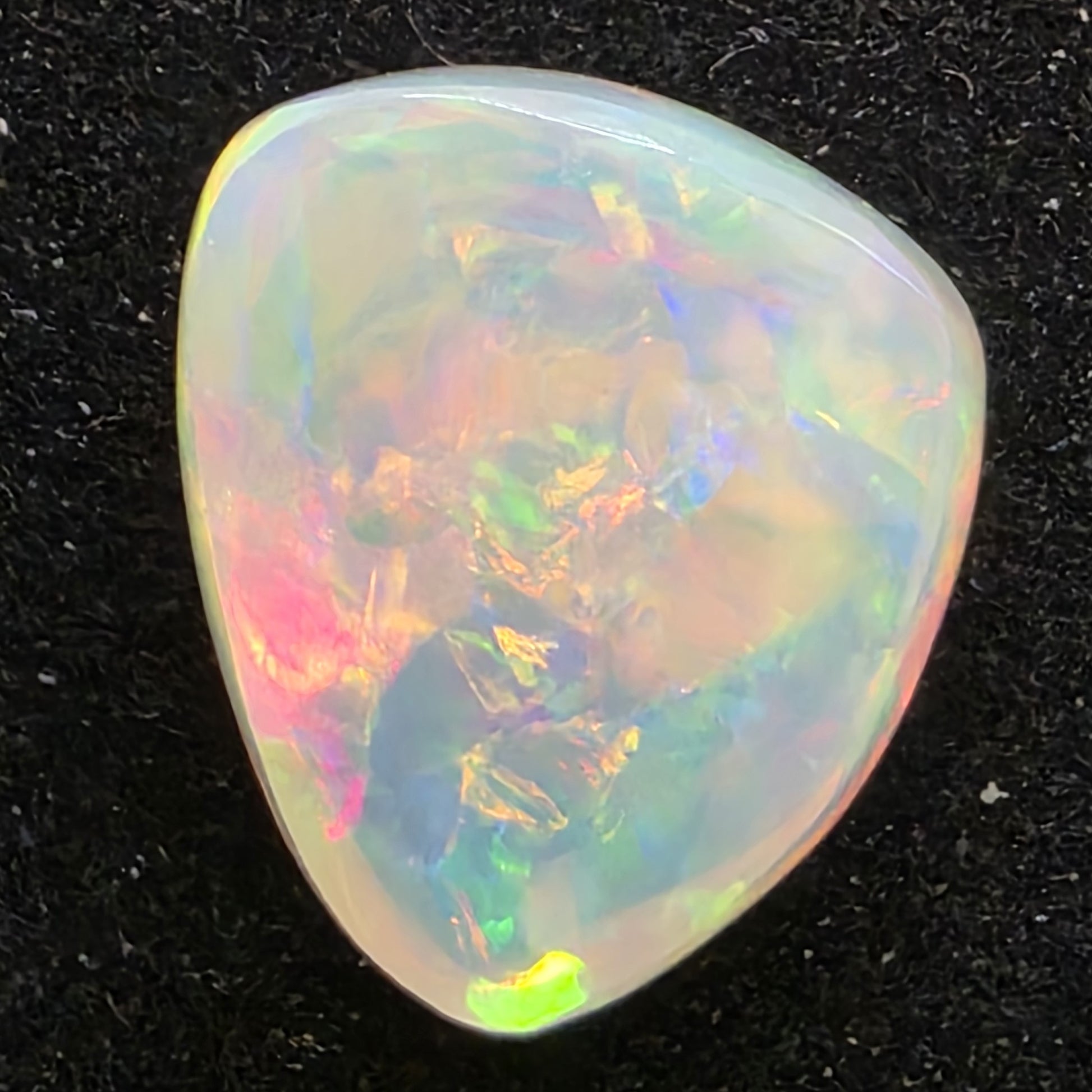 White Opal special Ethiopian Welo, 7.2 ct freeform polished, natural, intense Play-of-Colour