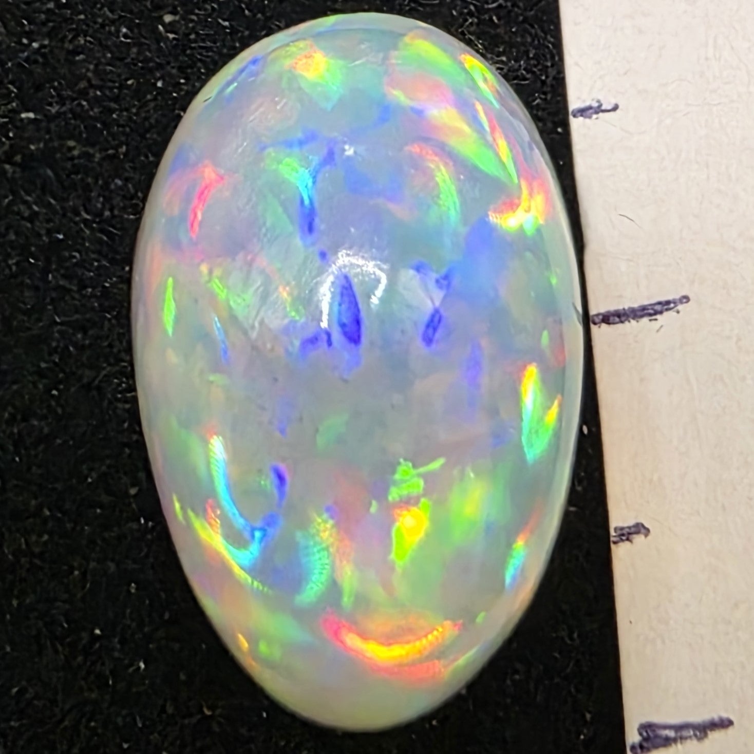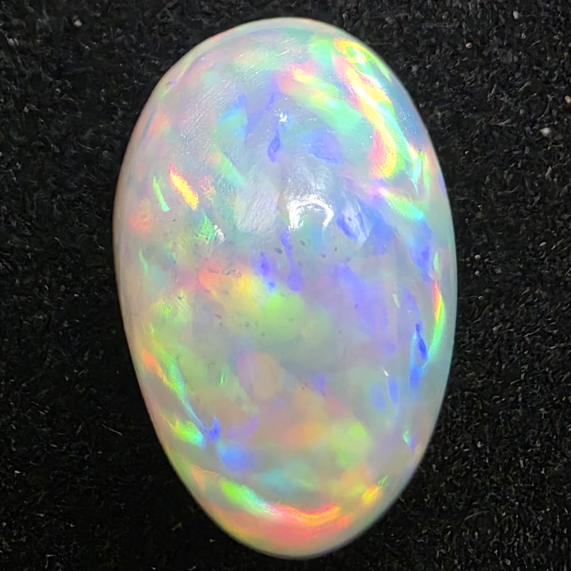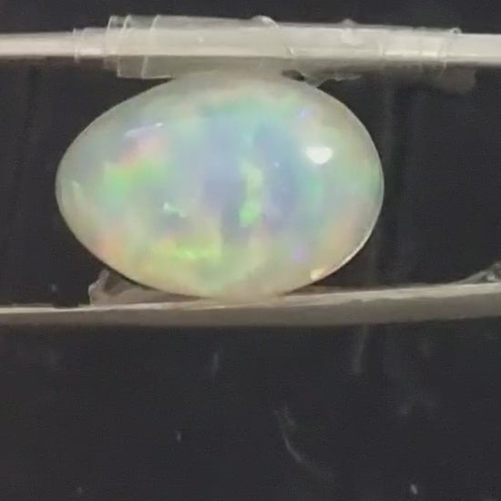 White Opal special Ethiopian Welo, 7.85 ct oval polished, natural, intense Play-of-Colour