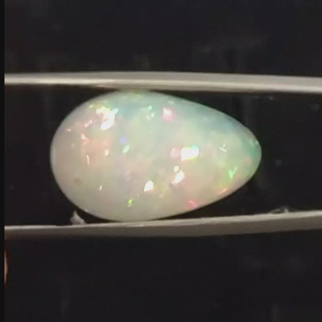 White Opal special Ethiopian Welo, 8.3 ct pear polished, natural, intense Play-of-Colour