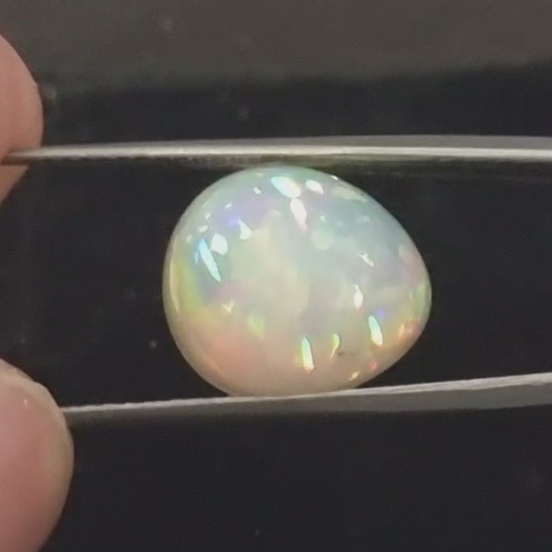 White Opal special Ethiopian Welo, 8.4 ct pear polished, natural, intense Play-of-Colour