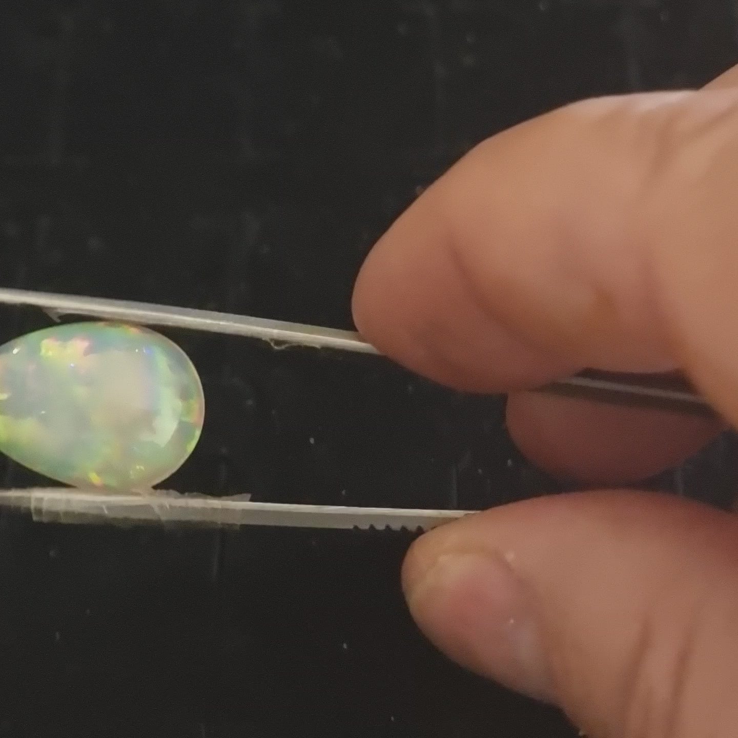White Opal special Ethiopian Welo, 8.5 ct pear polished, natural, intense Play-of-Colour