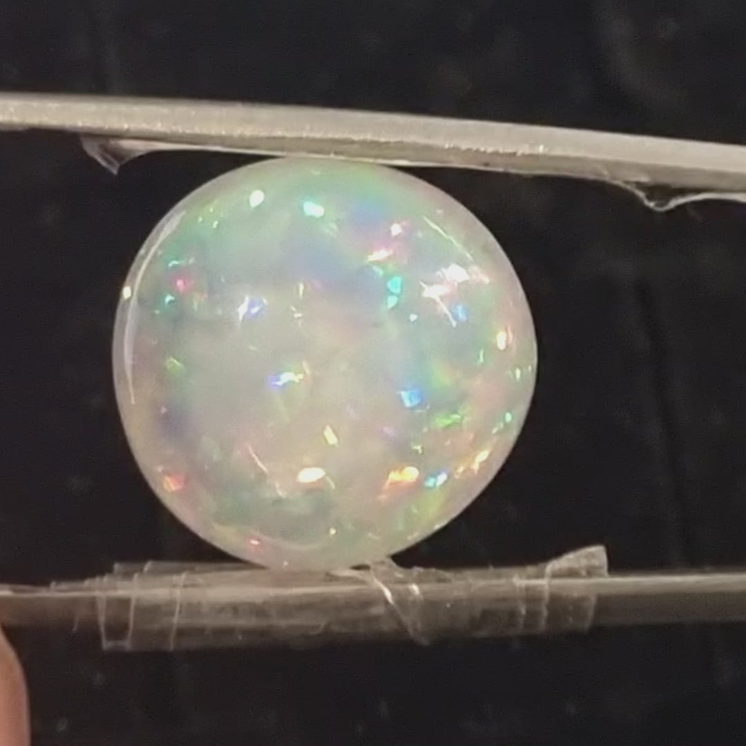White Opal special Ethiopian Welo, 8.55 ct round polished, natural, intense Play-of-Colour