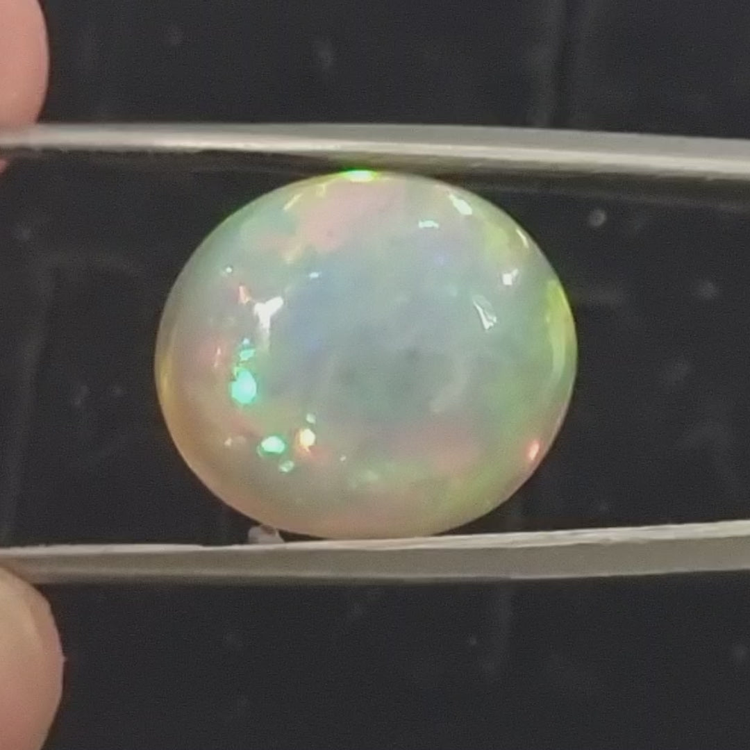 White Opal special Ethiopian Welo, 8.9 ct oval polished, natural, intense Play-of-Colour